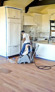 This project in Marin involved sanding down the surface of a Brazilian cherry wood floor and then finishing it with a walnut stain.